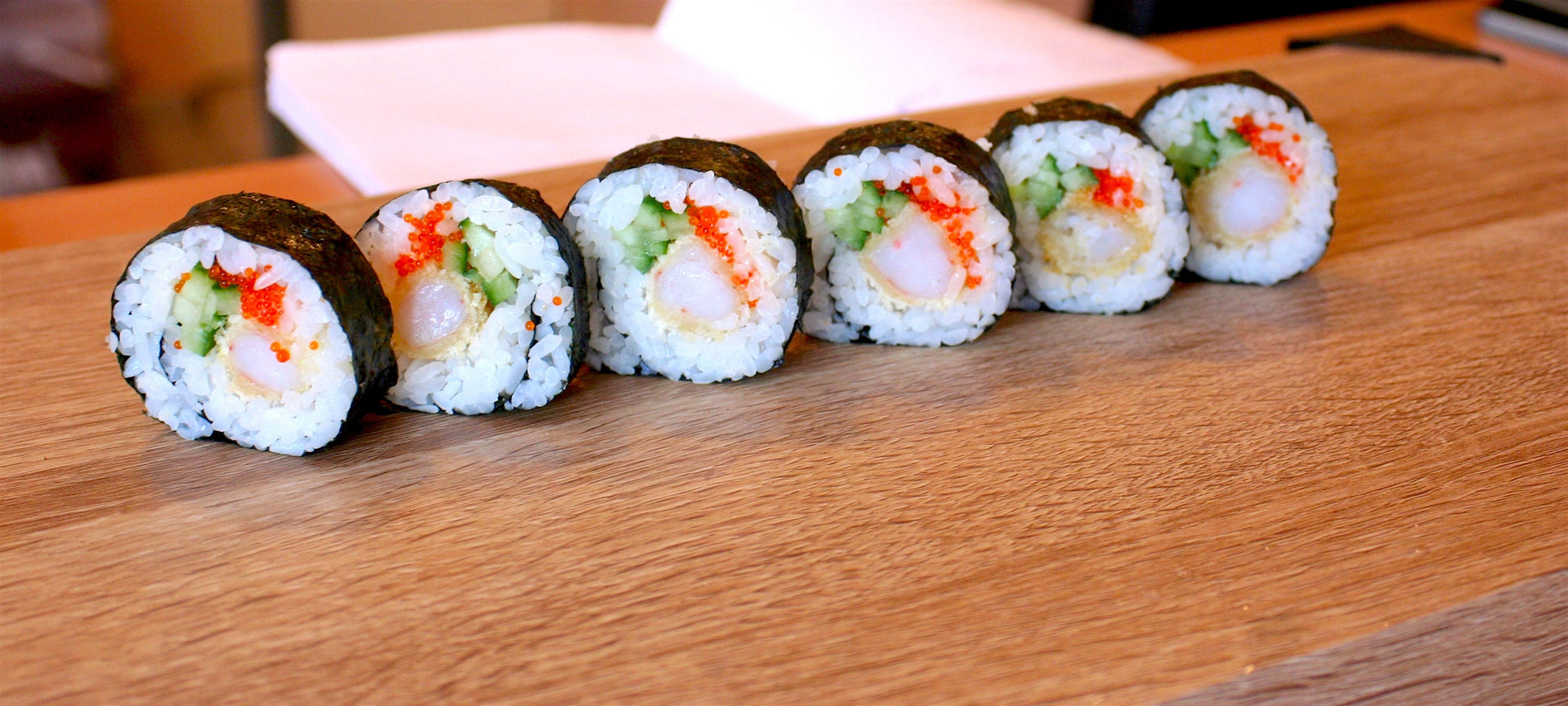 Нори, японски ориз, скарида темпура, тобико, краставица, японска майонеза